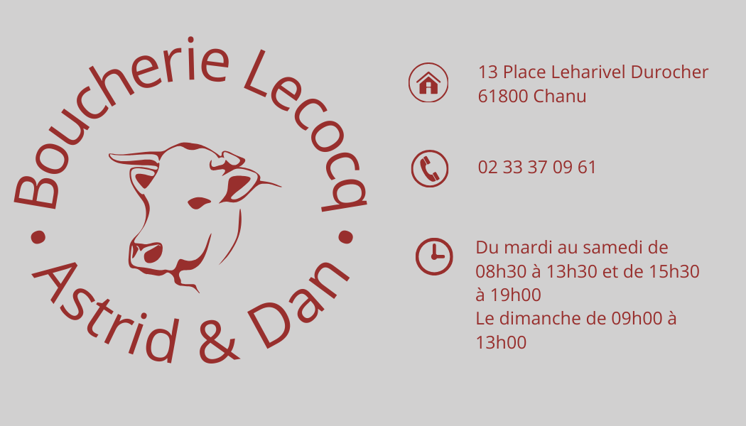 Horaires :Lundi : FerméMardi : 08h30-13h30 / 15h30-19h00Mercredi : 08h30-13h30 / 15h30-19h00Jeudi : 08h30-13h30 / 15h30-19h00Vendredi : 08h30-13h30 / 15h30-19h00Samedi : 08h30-13h30 / 15h30-19h00Dimanche : 09h00-13h00